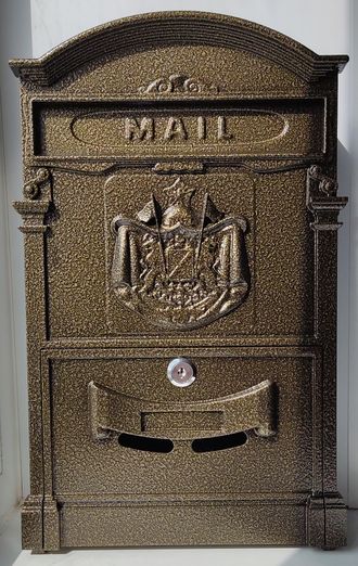 Ящик почтовый А-4010 Бронза Артикул: 1458 3800 руб. Габариты: 410х255х90 мм Материал: сталь Покрытие: полимерно-порошковое Цвет: бронза